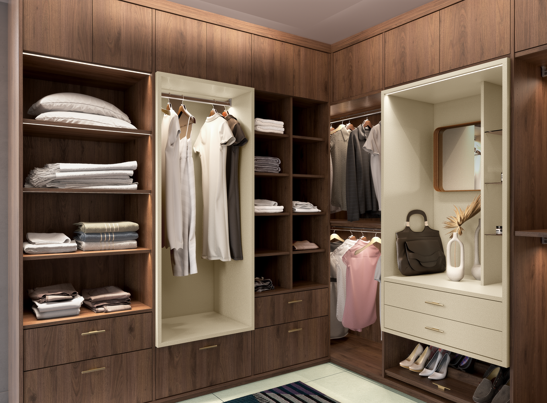 Le dressing peut être ouvert ou fermé, adapté à la dimension de votre pièce.